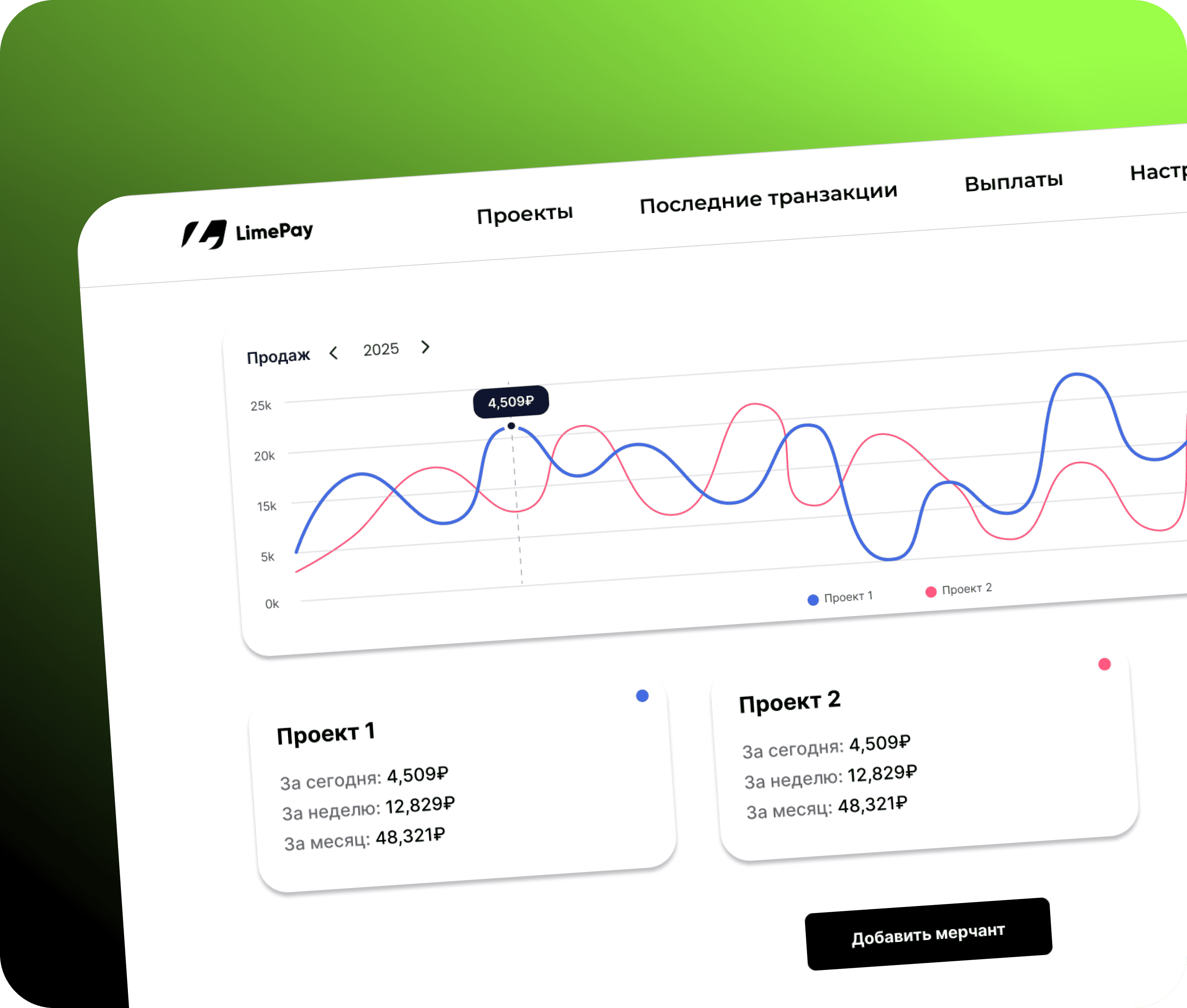 В личном кабинете есть вся информация о последних заказах, статистике всех проектов и управление выплатами, распределением комиссии между вами и покупателем